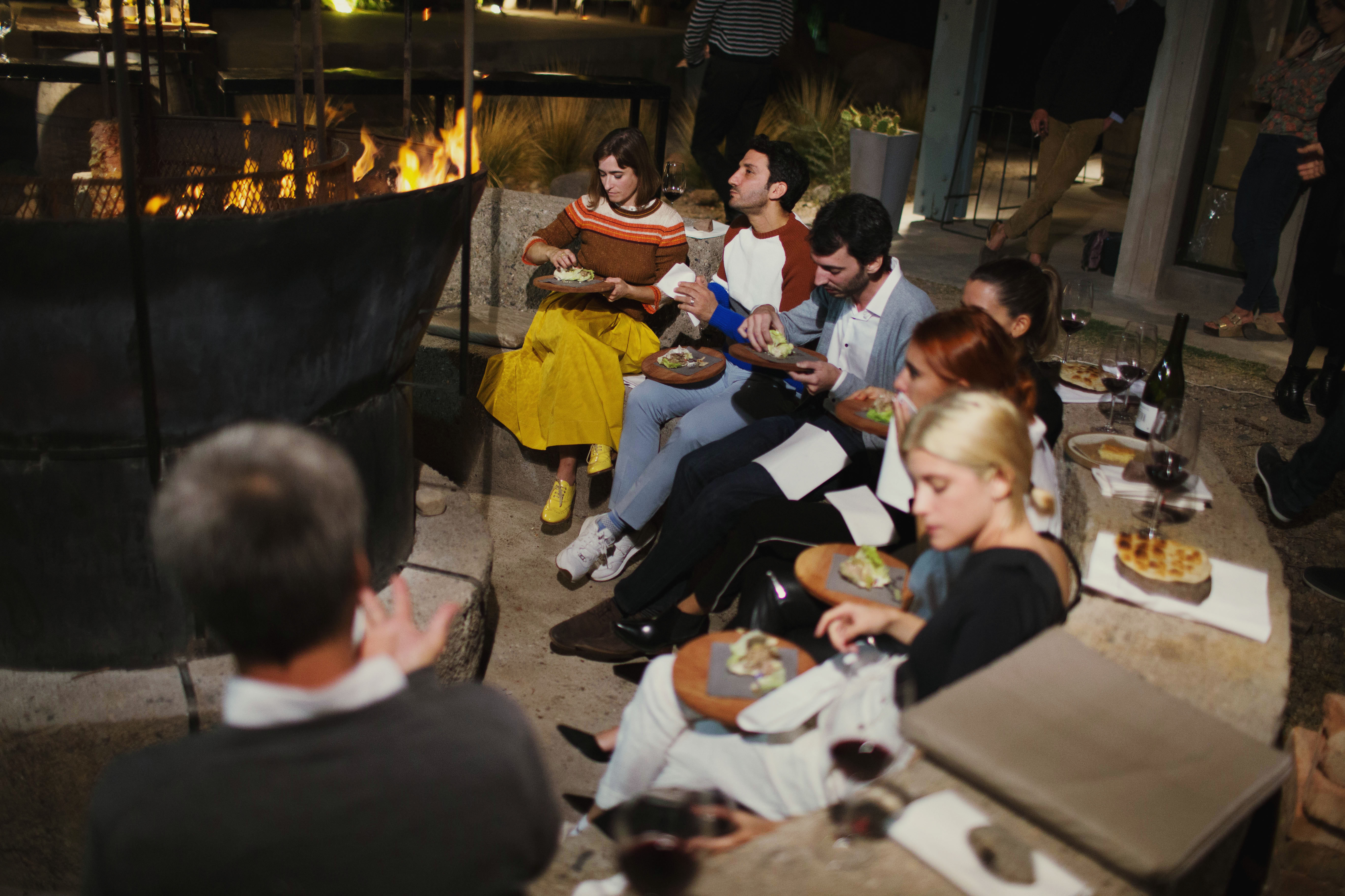El sol poco a poco se escondía entre las montañas, invitándonos a todos los felices comensales a la mesa. Juan Minujín, Malena Villa, Violeta Urtizberea y Carla Moure se encontraban entre los invitados. Un menú de once pasos se desplegó ante nosotros; desgustamos productos locales y frescos (algunos, incluso, recolectados por el propio Martitegui), maridados con los vinos más innovadores de la región, mientras el cielo se teñía de violeta. A cada bocado, una sorpresa. Y claro que la atmósfera contribuía a la idea de estar cenando en las puertas del paraíso. De pronto comprendí que el chef defiende su concepción del mundo a través de sus creaciones. Y conectarse con el misterio de ese lugar amplificaba nuestros sentidos.