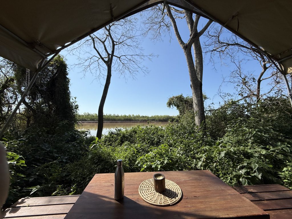 1) El entorno es el lujo, carpas traídas de África y desayunos en un deck frente al río.