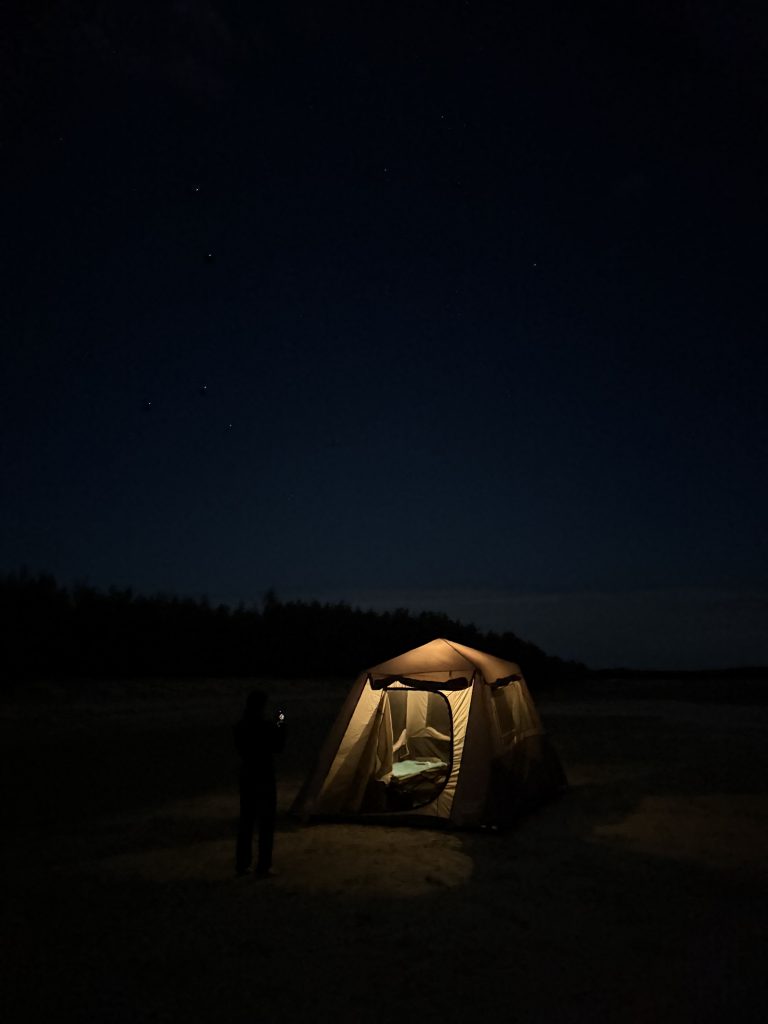 Sele, Nati y Evaristo, quienes trabajan en Los Palmares, prepararon la estadía para que todo sea perfecto: hubo pollo al disco, vino, charlas bajo la luna, carpas equipadas con catre y bolsa de dormir y desayuno. Por la noche se escuchaba la corriente del río y el eco que surgía en el espacio donde estábamos ubicados hacía que el sonido fuera envolvente y 360º. Entre sueños era difícil distinguir entre imaginación y realidad pero imposible olvidar que estábamos durmiendo aislados en un punto geográfico remoto y desconocido.