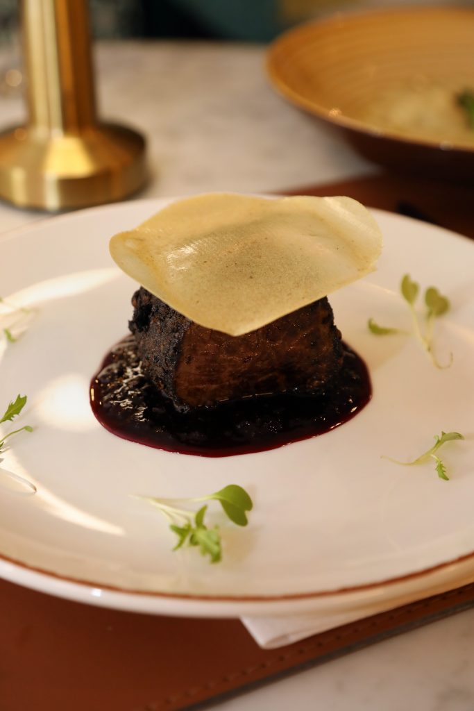 El Tercer Acto, «Revolución», es un lomo apanado en chimichurri seco y hierbas autóctonas con una salsa de rutos rojos patagónicos y Malbec. “Acá buscamos representar el amor y la muerte: la pimienta como pólvora, la salsa ácida, dulce y ferrosa como la sangre…»