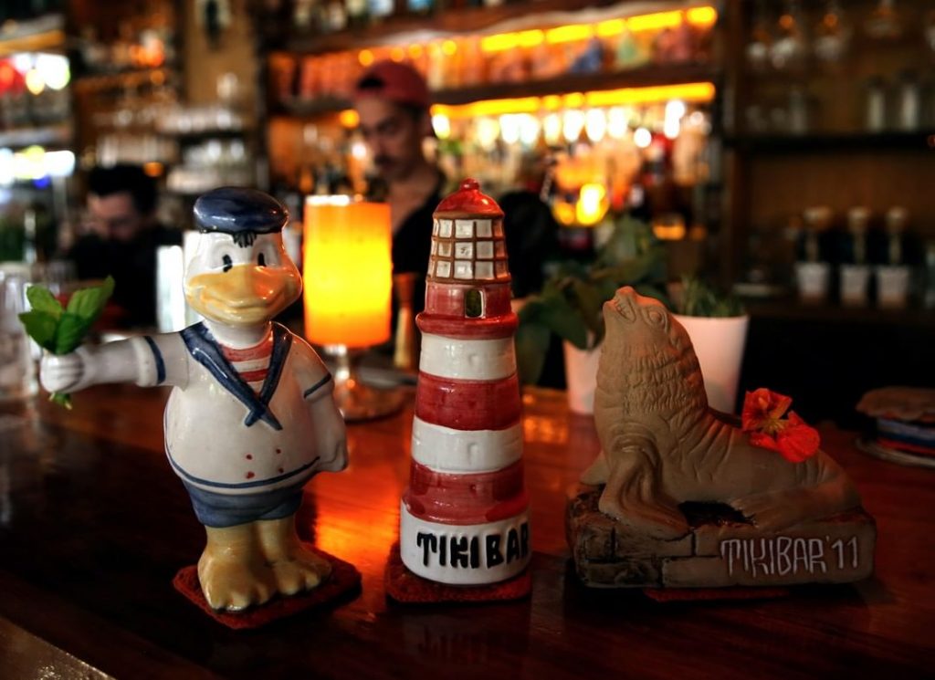 Nosotros desarmamos un poco el concepto universal “tiki”, lo tomamos como inspiración, y usamos los sabores y la identidad de Mar del Plata para reforzar esa imagen. Los “Tiki Max”, característicos de estos bares y donde se sirven los cócteles, por lo general tienen figuras alusivas a dioses protectores de Hawai y simbologías fuertes; nosotros reemplazamos a estos dioses por el Pato de Punta Mogotes, por ejemplo, como el símbolo más preponderante de la ciudad. La primera vez que me tomé un colectivo sabía que me tenía que bajar ahí, y desde ahí me acompaña siempre, vivo a dos cuadras y siempre lo saludo. Con la estética pasó algo parecido, en vez de usar ratán o materiales de isla, usamos mimbre que es característico de Mar del Plata. En síntesis, deformamos un poco el concepto “tiki” y lo “amarplatensamos”.