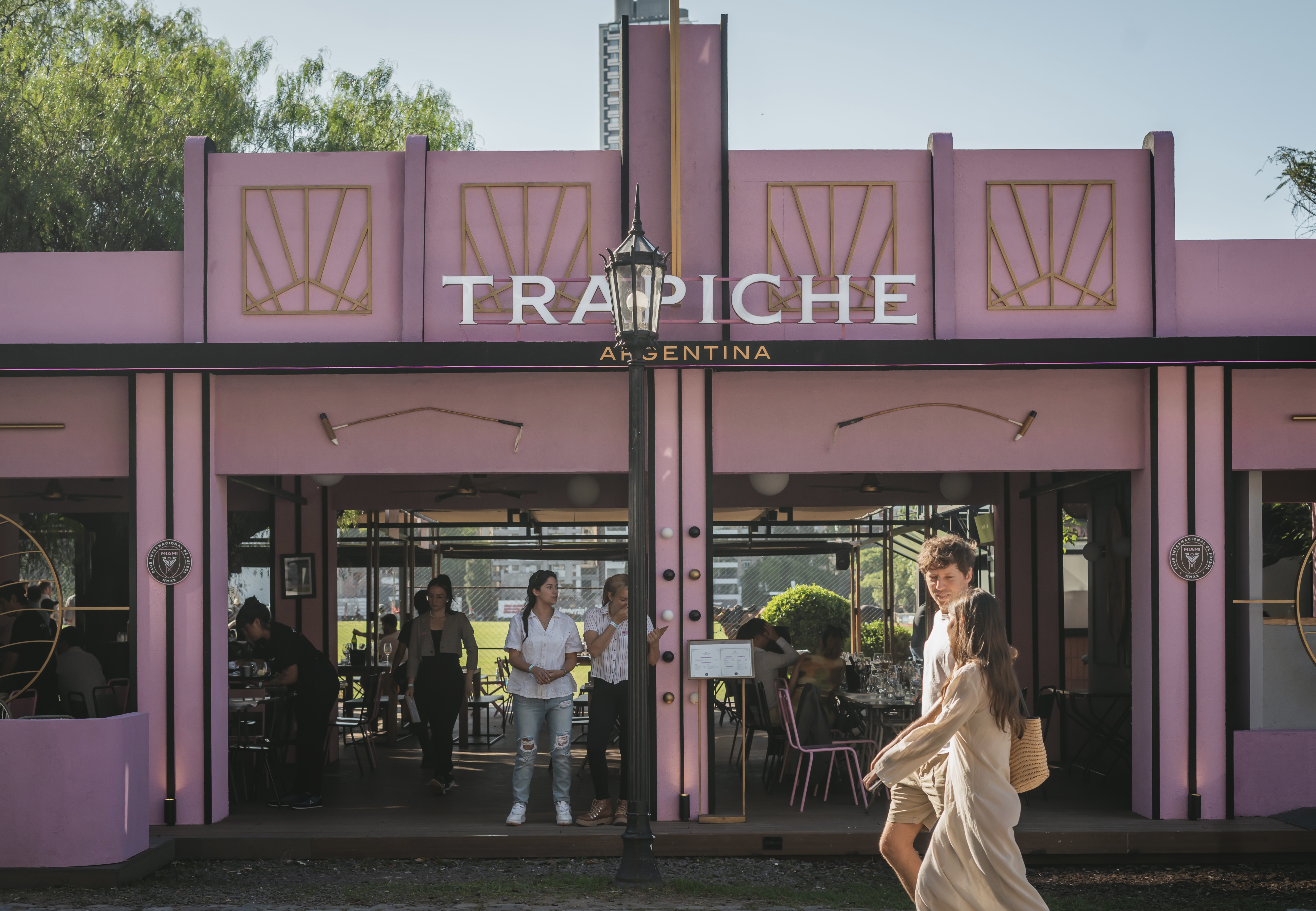 Si hay un lugar que llama la atención en el predio este año, es la propuesta de Trapiche. Para festejar que se convirtieron en la bodega oficial del Inter Miami CF, desembarcaron con Estación 83, un espacio completamente rosa y una carta que apuesta al grill (parrillas y jaulas a la vista), con costillas, vacío, asado, ojo de bife, choripán y otros clásicos de la parrilla argentina. Pero el verdadero tesoro está en atravesar el patio techado para desembocar en una vista primer plano de la cancha dos, que se convierte en la pantalla de entretenimiento en vivo, mientras te sentás tranquilo a comer y tomar algo.