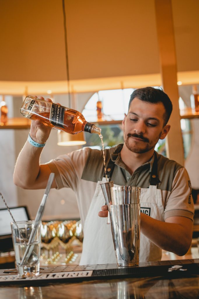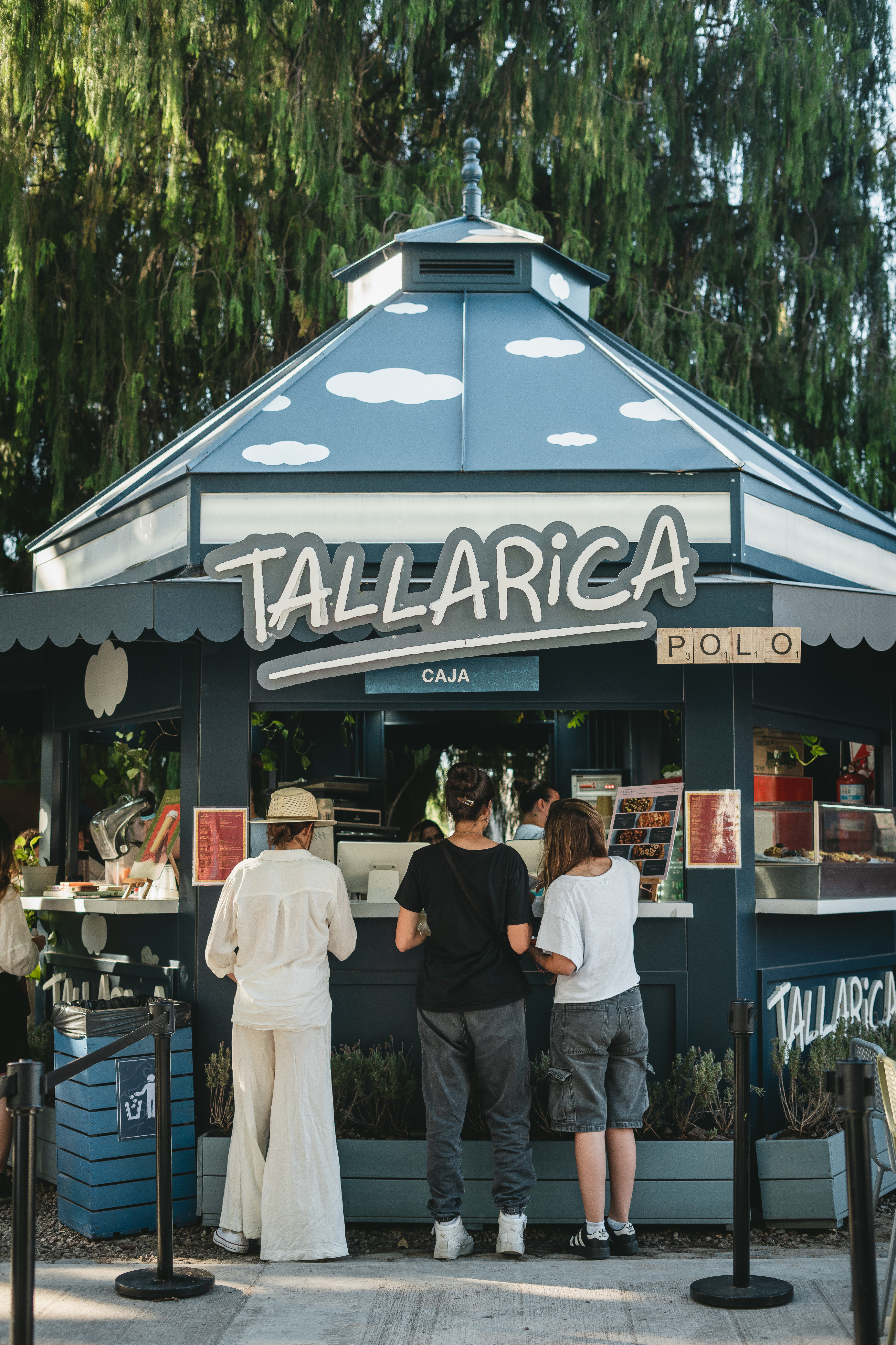 Caminando por el predio, hay un rincón dorado que llama la atención, especialmente cuando le da el sol directo. Justo antes de llegar al patio de comidas, Johnnie Walker armó un bar con una barra semicircular de mármol, sillones privados y una carta de cocktails donde el whisky es protagonista. Los bartenders te preparan desde un “John Collins” con JW Black, syrup, limón y espumante; hasta un “Coffee Highball” que lleva el mismo whisky con Cold brew y tónica; o un Penicillin que no está en carta pero es un clásico que siempre se puede pedir. Para el que tenga ganas de sentarse cómodo y comer algo un poco más que al paso, también hay un menú con tapeo, principales – como una baguette de ternera braseada o un criollo de tomates confitados – y combinados de sushi, con salmón y langostinos o en versión vegetariana.